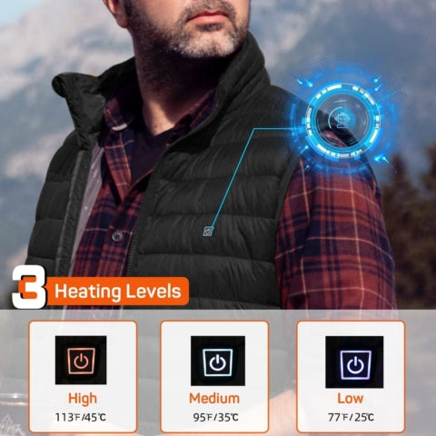 Step into the cold with confidence. With just one button, the Heated Vest lets you switch between three heat levels—low, medium, and high—to match your exact needs. Whether you’re braving freezing winds, enjoying a brisk evening walk, or sitting at an outdoor game, you can instantly adjust for the perfect level of warmth.